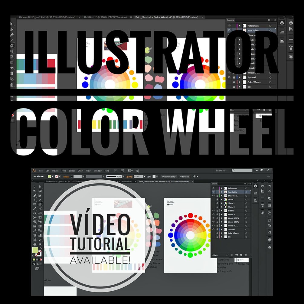 When I'm creating large color palettes I just get tired from having to "alt+tab" several times from online Color Wheels, so I created one in Illustrator to optimize my time and to be available offline too.
