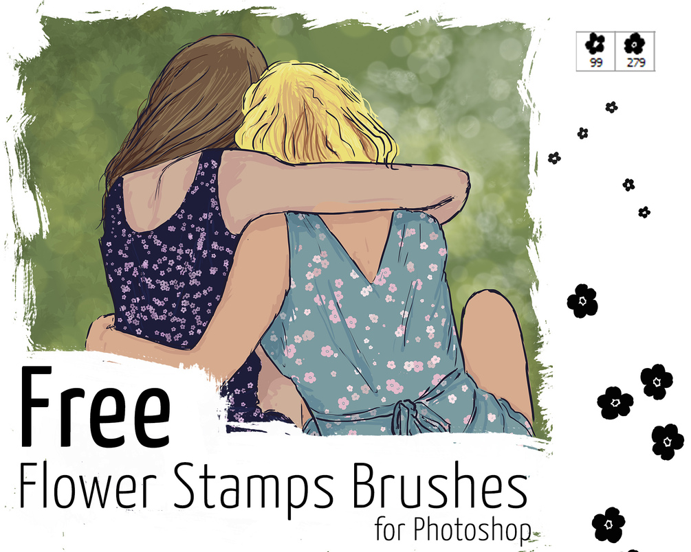 These are the two brushes I made for an illustration commission. I really wanted to make the dresses with little flowers stamp, so I created them.